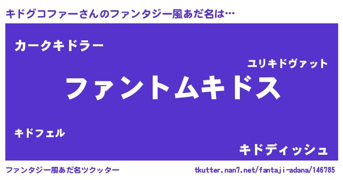 | 男性向けラノベタイトル風あだ名 | 『キドグコファーの嫁は女の子じゃないと思った?』 |