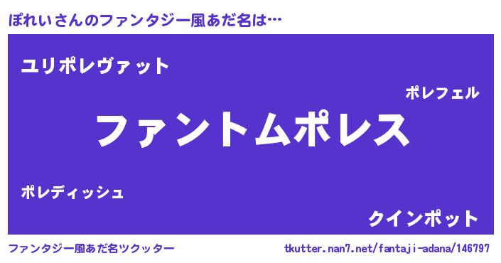 | ヒーロー風カッコイイあだ名 | 『黄金騎士ポレ』『天空の使者ぽれい』 |