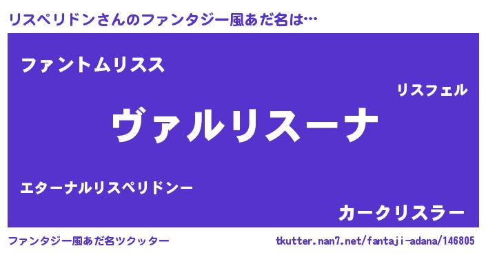 | 男性向けラノベタイトル風あだ名 | 『魔弾の王とリスペリドン』 |
