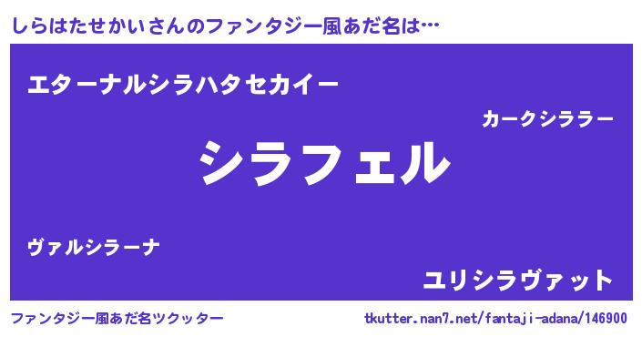 | 男性向けラノベタイトル風あだ名 | 『シラハタセカイアートオンライン』 |