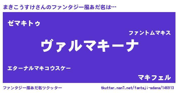 | 男性向けラノベタイトル風あだ名 | 『魔弾の王とまきこうすけ』 |