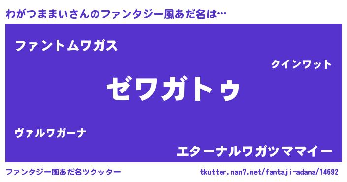 | ヒーロー風カッコイイあだ名 | 『最強戦士ワガツママイ』『炎刃騎士ワガ』 |