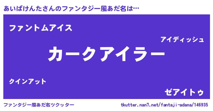 | 欧米人風あだ名 | 『あいばけんた・ステッグマイヤー』 |