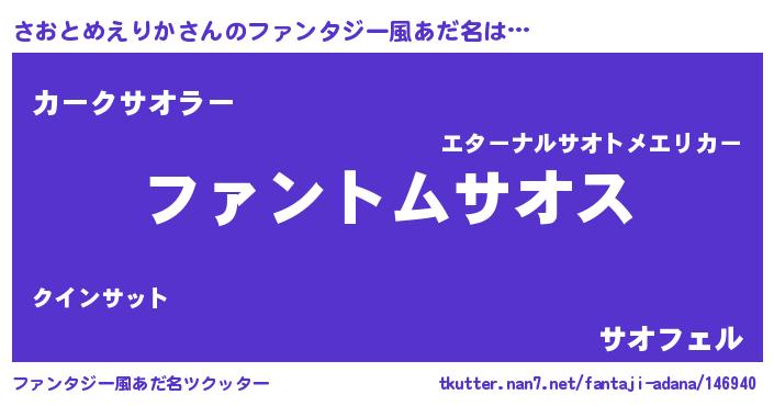 | ヒーロー風カッコイイあだ名 | 『魔戒騎士サオ』『ネオサオトメエリカ』 |