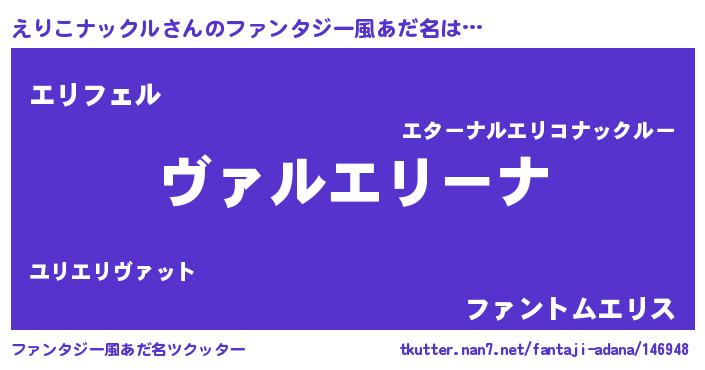 | 意味不明あだ名 | 『住所不定無職えりこナックル(6歳)』 |