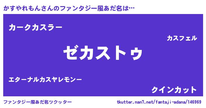 | 男性向けラノベタイトル風あだ名 | 『Re:かすやれもんから始める異世界生活』 |