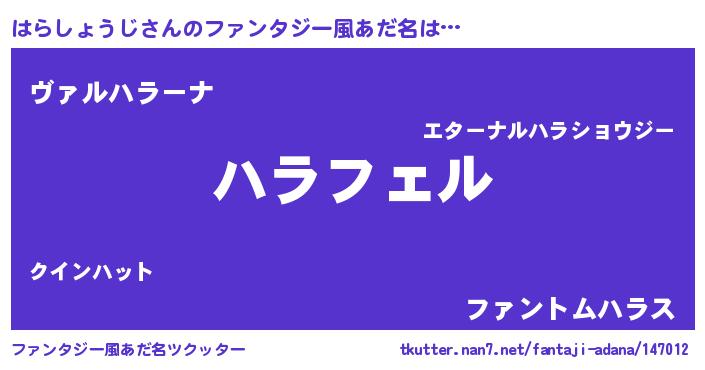 | 男性向けラノベタイトル風あだ名 | 『ハラショウジアートオンライン』 |