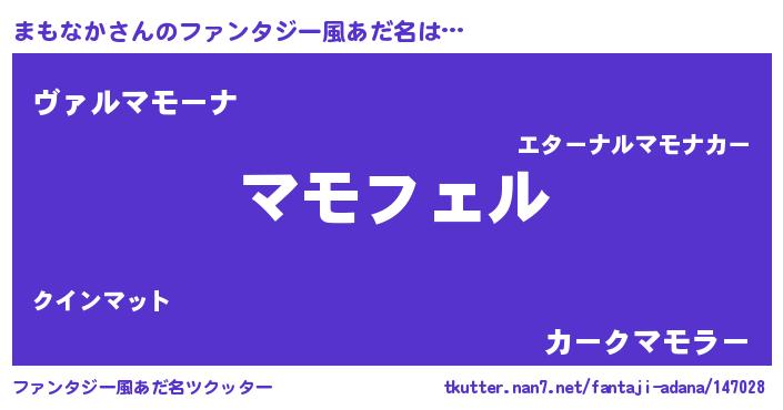 | 自動車の名前っぽいあだ名 | 『マモティマ』『マウディ』『マクア』 |