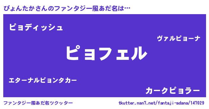 | ヘコむあだ名 | 『ぴょにー』『ぴょんたか(震え声)』 |