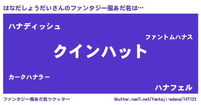 | ヘコむあだ名 | 『はなだしょうだい(小並感)』『はなにゅー』 |