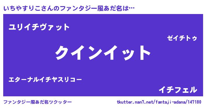 | 男性向けラノベタイトル風あだ名 | 『おまえをオタクにしてやるから、俺をいちやすりこにしてくれ! 』 |