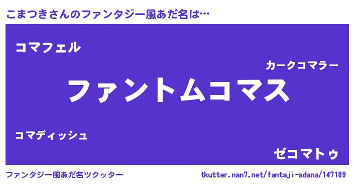 | 自動車の名前っぽいあだ名 | 『コルトマパン』『コマティマ』 |