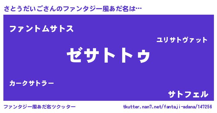 | ポケモン風あだ名 | 『サトセウス』『ヒサトウダイゴ』 |