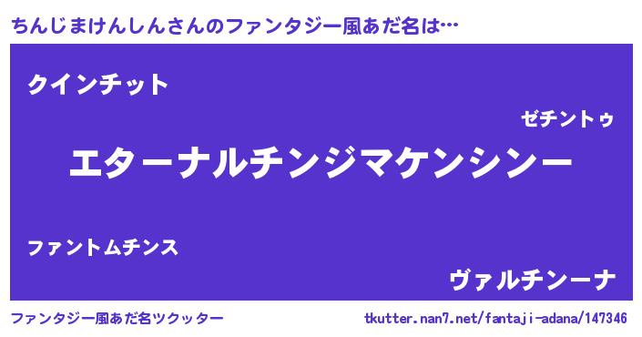| 意味不明あだ名 | 『ちんじまけんしんフォーエバー』 |