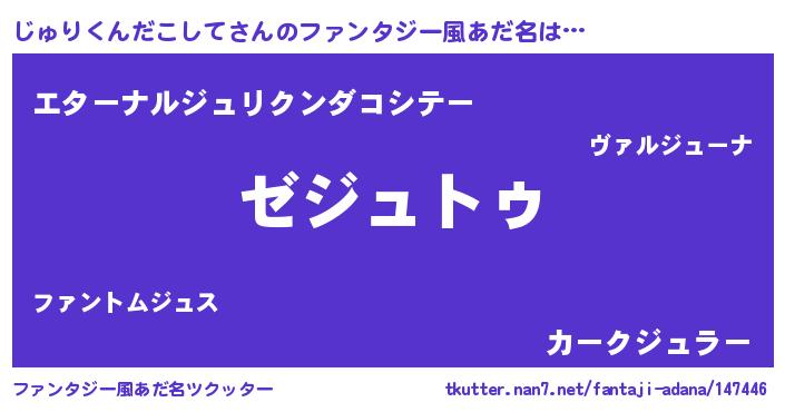 | 男性向けラノベタイトル風あだ名 | 『Re:じゅりくんだこしてから始める異世界生活』 |