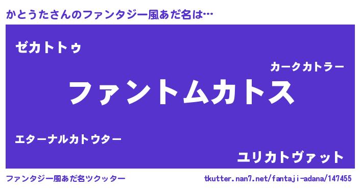 | ヒーロー風カッコイイあだ名 | 『魔戒騎士カト』『ウルトラ戦士カトウタ』 |