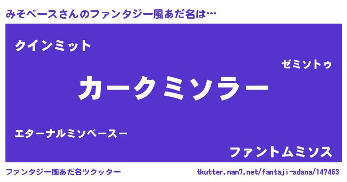 | ヒーロー風カッコイイあだ名 | 『慈愛の使者みそベース』『幻影騎士ミソ』 |