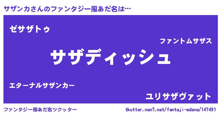 | ポケモン風あだ名 | 『ゼニサザ』『サザセウス』 |
