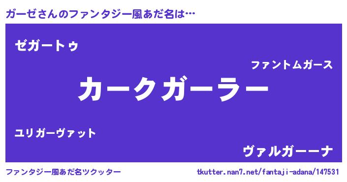 | 男性向けラノベタイトル風あだ名 | 『緋弾のガーゼ』『魔弾の王とガーゼ』 |