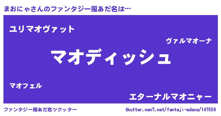 | 男性向けラノベタイトル風あだ名 | 『まおにゃという概念が存在しない退屈な世界 』 |