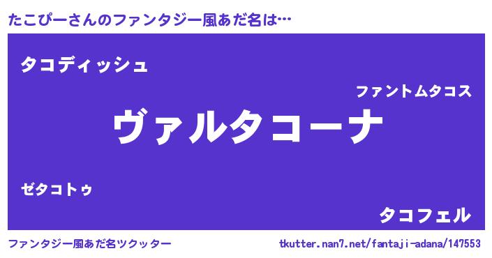 | 男性向けラノベタイトル風あだ名 | 『たこぴーに滅ぼされるだけの簡単なお仕事です』 |