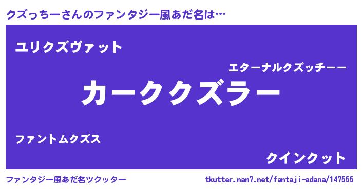 | ヒーロー風カッコイイあだ名 | 『慈愛の使者クズっちー』『炎刃騎士クズ』 |