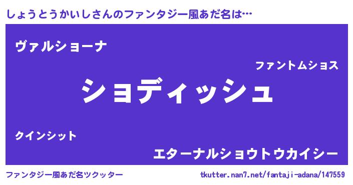 | 意味不明あだ名 | 『永久保存しょうとうかいし』 |