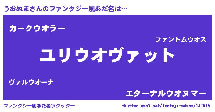 | 料理風あだ名 | 『うおぬまごはん』 |