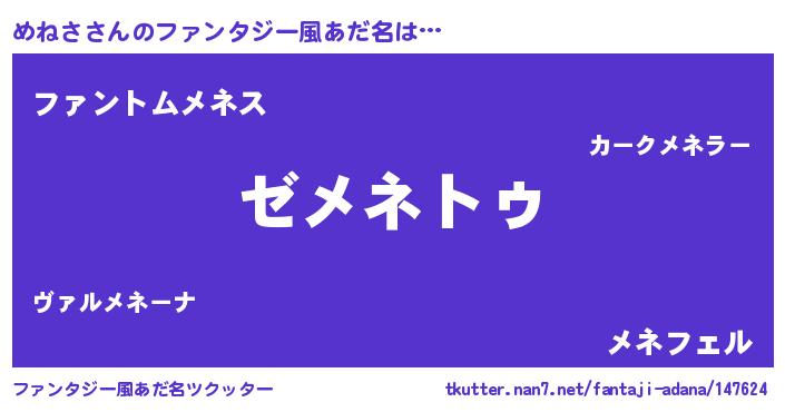 | ポケモン風あだ名 | 『メネセウス』『ヒメネサ』 |
