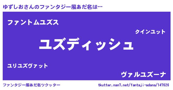 | 男性向けラノベタイトル風あだ名 | 『ゆずしおという概念が存在しない退屈な世界 』 |