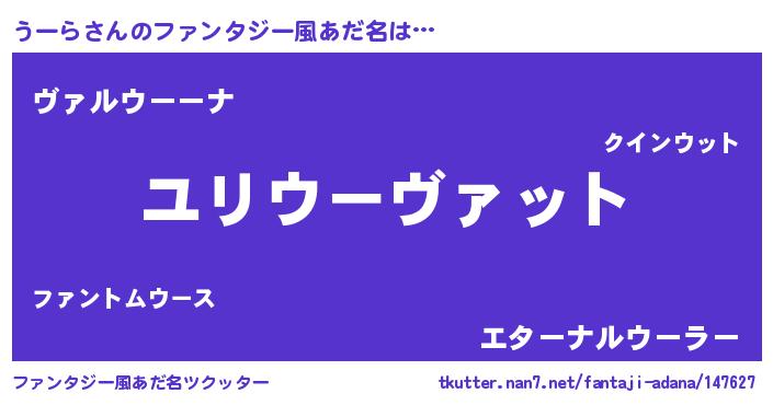 | 男性向けラノベタイトル風あだ名 | 『転生したらうーらだった件』 |