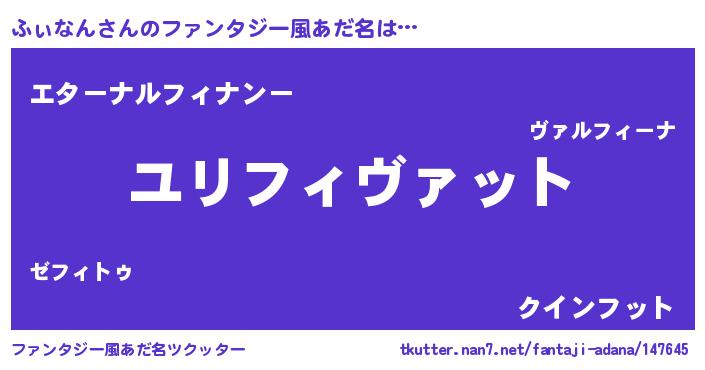 | 意味不明あだ名 | 『ヨモギ科ふぃなん属』『自称ふぃなん』 |