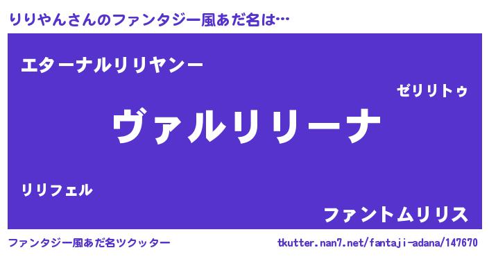 | 女子向けラノベタイトル風あだ名 | 『乙女ゲームの破滅フラグしかない悪役りりやんに転生してしまった…』 |