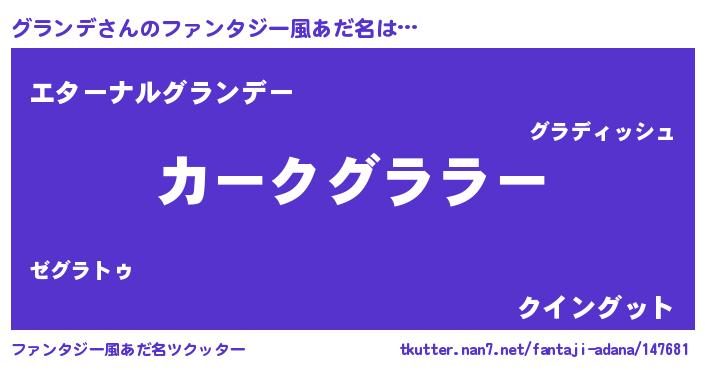 | 男性向けラノベタイトル風あだ名 | 『うちのグランデが世界を掌握している!』 |
