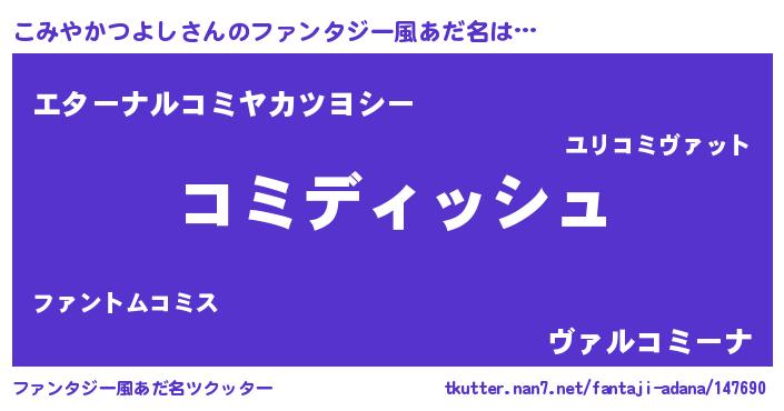 | 男性向けラノベタイトル風あだ名 | 『こみやかつよしという概念が存在しない退屈な世界 』 |