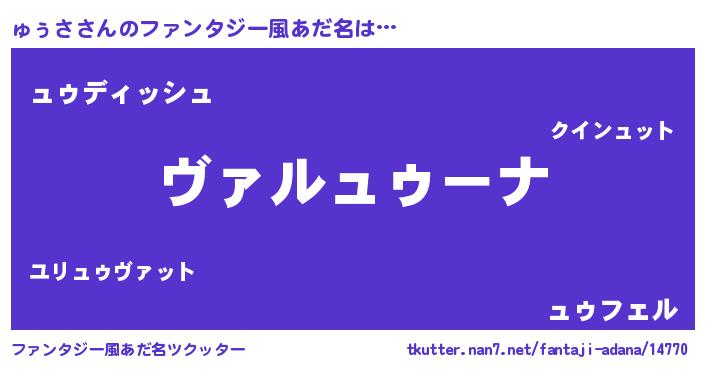 | 男性向けラノベタイトル風あだ名 | 『魔弾の王とゅぅさ』 |