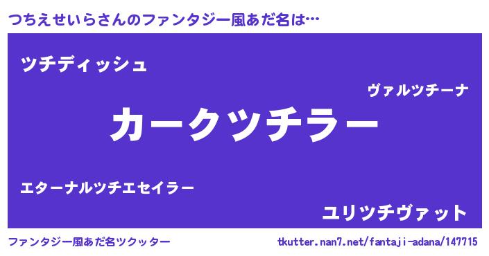 | 胡散臭い通販商品みたいなあだ名 | 『絶対に幸福をもたらす健康食品…その名も「つちえせいら」』 |