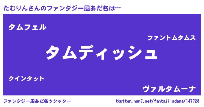 | 男性向けラノベタイトル風あだ名 | 『たむりんという概念が存在しない退屈な世界 』 |