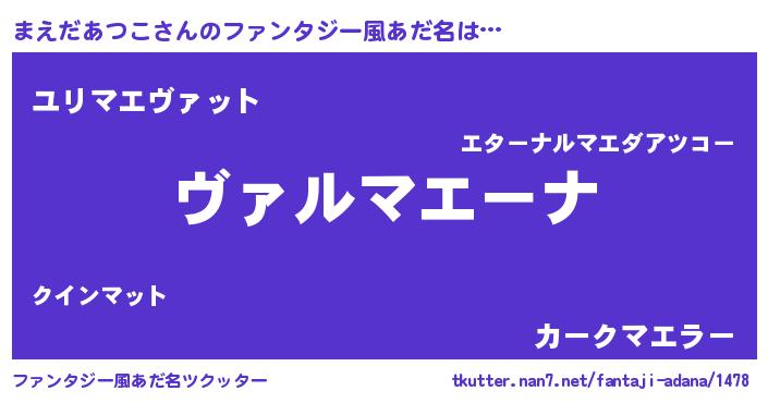 | 女子向けラノベタイトル風あだ名 | 『乙女ゲームの破滅フラグしかない悪役まえだあつこに転生してしまった…』 |