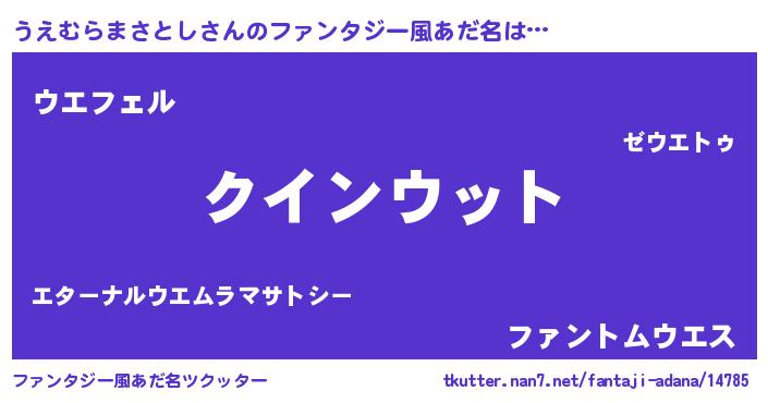 | ポケモン風あだ名 | 『ウエゴンZ』『ウックウザ』 |