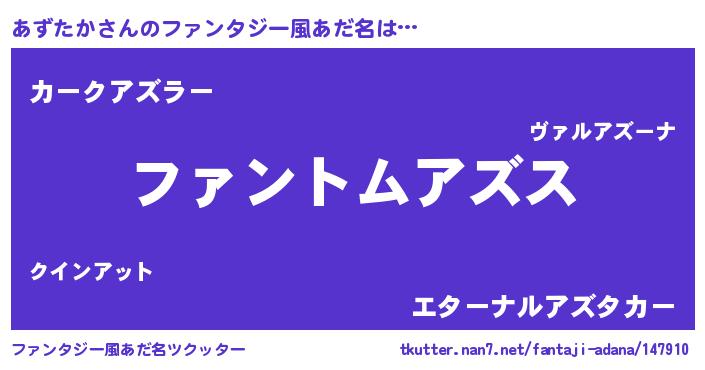 | ヒーロー風カッコイイあだ名 | 『天弓騎士アズ』『ウルトラあずたかマン』 |