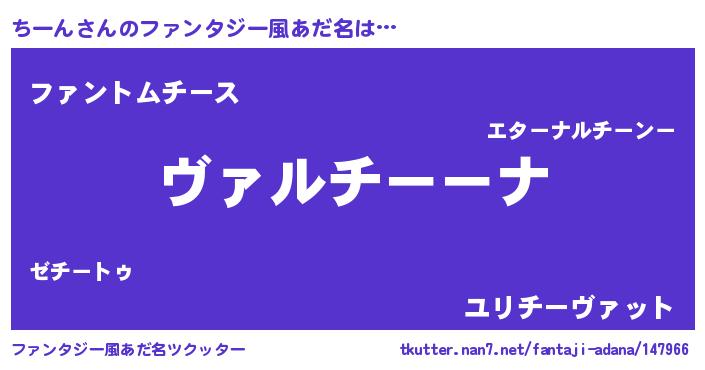 | 男性向けラノベタイトル風あだ名 | 『この素晴らしい世界にちーんを!』 |