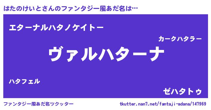 | ヒーロー風カッコイイあだ名 | 『仮面ハタダー』『スーパーハタノケイト』 |