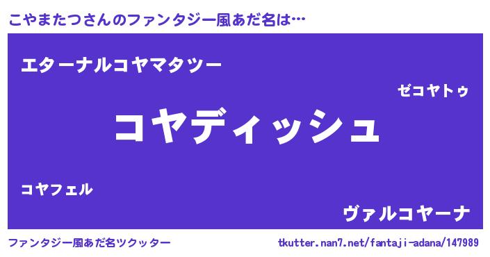 | 意味不明あだ名 | 『永久保存こやまたつ』『自称こやまたつ』 |