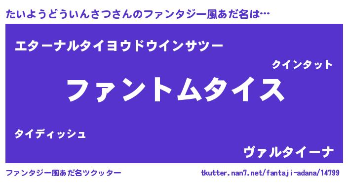 | ポケモン風あだ名 | 『ヒタイヨウドウインサツ』『タイヨダネ』 |