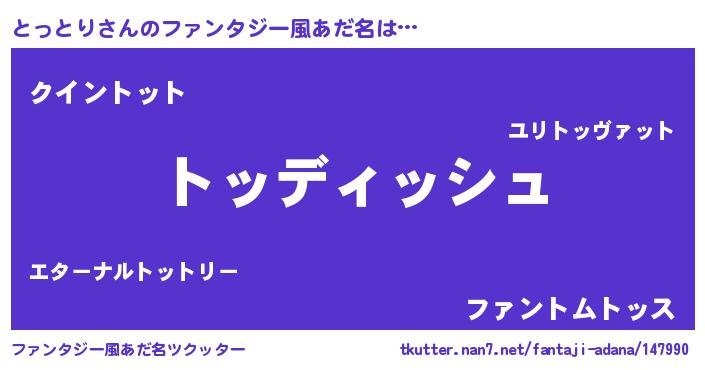 | 欧米人風あだ名 | 『アンジェラ・とっとり』 |