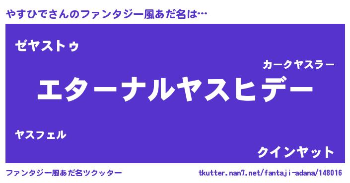 | 意味不明あだ名 | 『やすひでフォーエバー』『自称やすひで』 |
