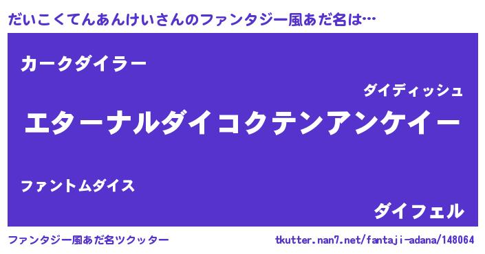 | 意味不明あだ名 | 『だいこくてんあんけいフォーエバー』 |