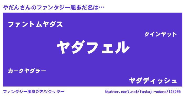 | ヒーロー風カッコイイあだ名 | 『スーパーヤダン』『魔戒騎士ヤダ』 |