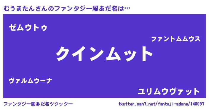 | 男性向けラノベタイトル風あだ名 | 『むうまたんに滅ぼされるだけの簡単なお仕事です』 |